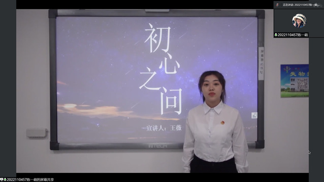 南医微天使微团课宣讲团成员王薇,以《初心之问》主题宣讲向新生们展现了护生风采。