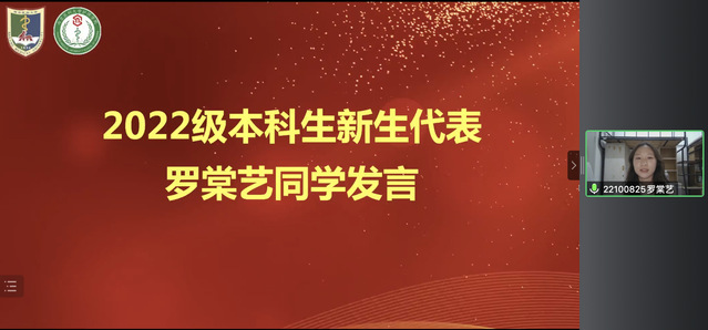 2022级本科生新生代表罗棠艺同学在发言中表示,希望能在大学里保持对护理学的热爱,勤学苦练,不断强化医技素养和个人综合素质,以饱满的青春热情为护理学院增添最亮丽的色彩。