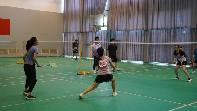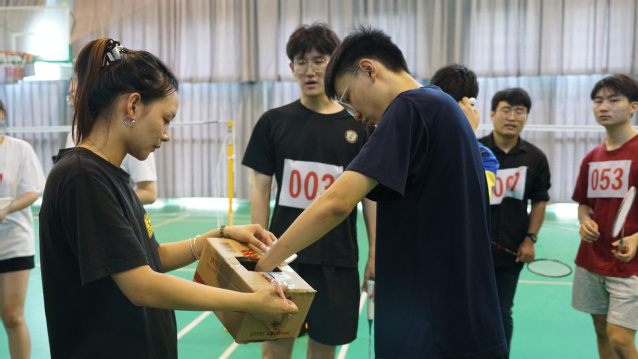 此次比赛分为男双、女双、混双三个项目,两两对战,决出胜负。通过前期的宣传,一共有来自不同学院的60多名硕博研究生报名参赛。赛前,参赛选手早早来到场馆进行赛前热身准备。比赛伊始,裁判向参赛选手介绍了羽毛球双打比赛规则。随后,每组派出一名选手抽签,匹配比赛对手,比赛正式开始。