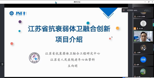 王向明教授做了主旨报告,对我省“体卫融合”项目进行了介绍,主要从五个方面展开,分别是:抗衰弱“体卫融合”一体化健康管理平台的建立、老年衰弱的临床和基础研究、抗衰弱大数据分析及智能化设备研究、体卫融合慢病防治、老年衰弱的系统性有效性评价以及老年人衰弱评估体系的建立。