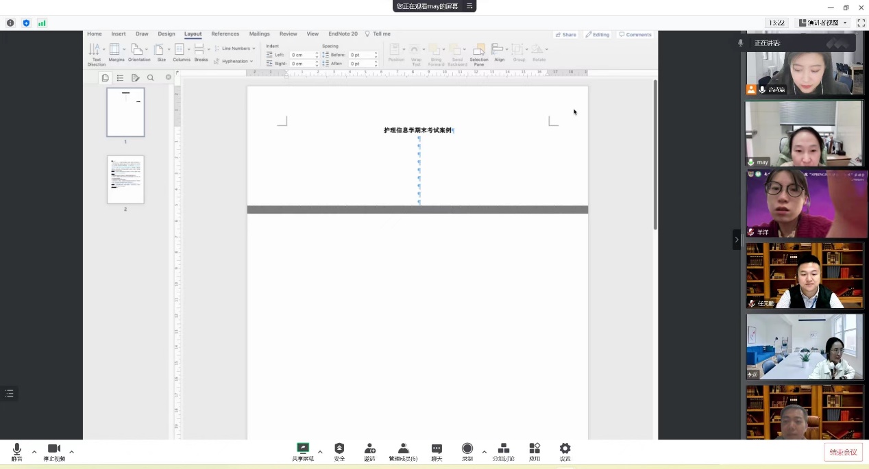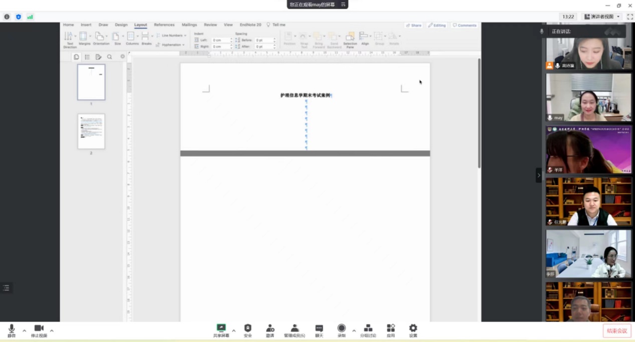 为更好对同学知识掌握情况进行考察,护理人文与管理学系于11月3日开展了3+2护理本科生《护理信息学》教研活动,对课程期末考核内容及形式进行研讨。本次参会人员有课程负责人杨如美副教授、授课教师羊洋、李莎、陈申、任元鹏及助教高诗瀛。杨如美老师主持本次会议。