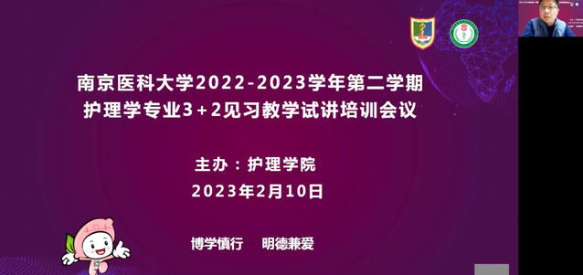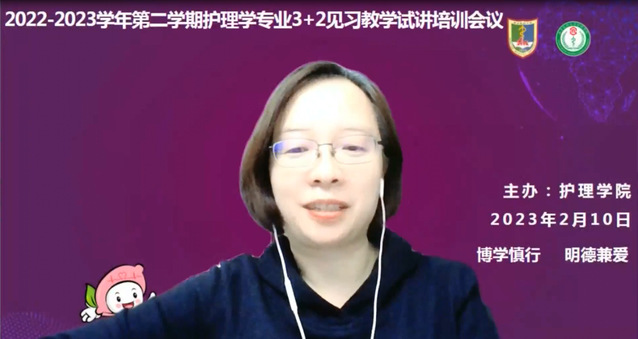 2月10日下午2点,MK体育(中国)线上进行2022-2023学年第二学期护理学专业3+2见习教学试讲培训会议。MK体育(中国)全体领导、教学督导、学系主任、3+2见习教学基地临床护理教研室领导、各课程教学团队(含课程联络人、总负责人、负责人和授课师资)参加了会议。会议由MK体育(中国)丁亚萍副院长主持。