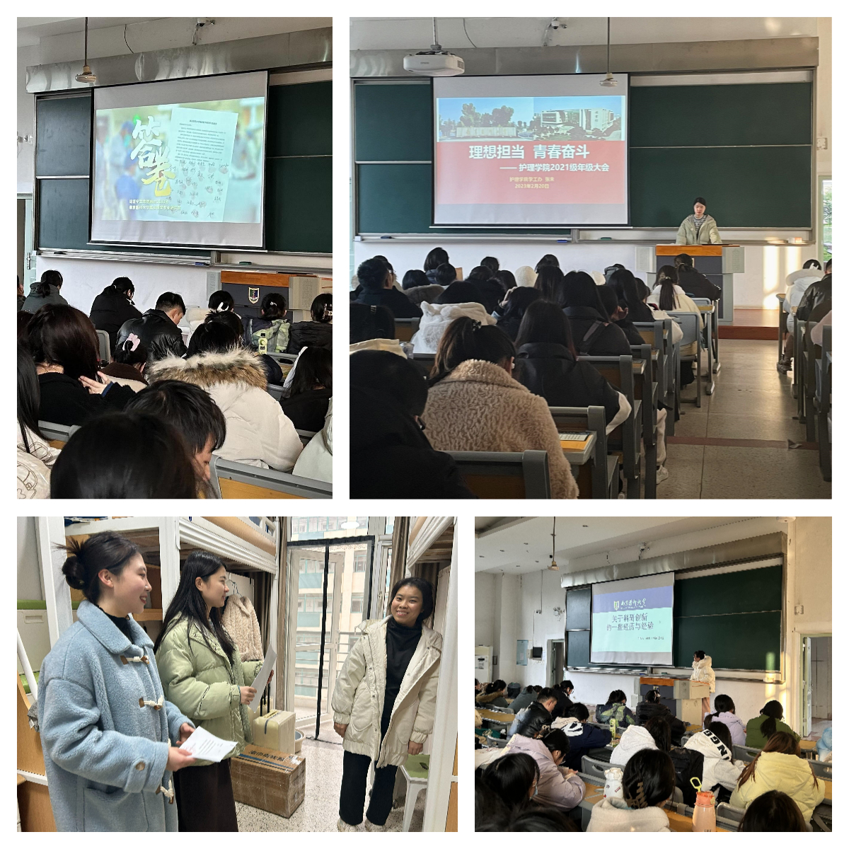 2月20日,MK体育(中国)2021级2021-2022学年第二学期春季年级大会在博学楼阶3举行。辅导员张未、2021级全体本科生参加会议。张老师提醒同学们严格遵守学校的防疫要求,增强自我防护意识,做自己健康防护的第一责任人;倡导同学们关注心理健康,学会自我调节,熟悉校内外的心理咨询渠道和流程。张老师全面分析了同学们学业情况,开展诚信考试教育,希望同学们不断努力以取得更好的成绩;鼓励同学们积极参与“学习贯彻党的二十大精神”,不断增强思想水平。双创比赛优秀学生代表高瑜同学就科研创新实践进行了经验分享。她从“双创”比赛基本知识、个人科研经历、科研工具推荐等方面介绍,鼓励同学们积极参与科研活动。全体21级本科生观看南医抗疫纪录片《白衣执甲》和《答卷》,回溯南医抗疫时光,共同感受医护从业者的责任与使命。张未老师希望同学们能够总结过去、展望未来,赓续医学前辈荣光,在新学期交出不负时代所托的“答卷”。