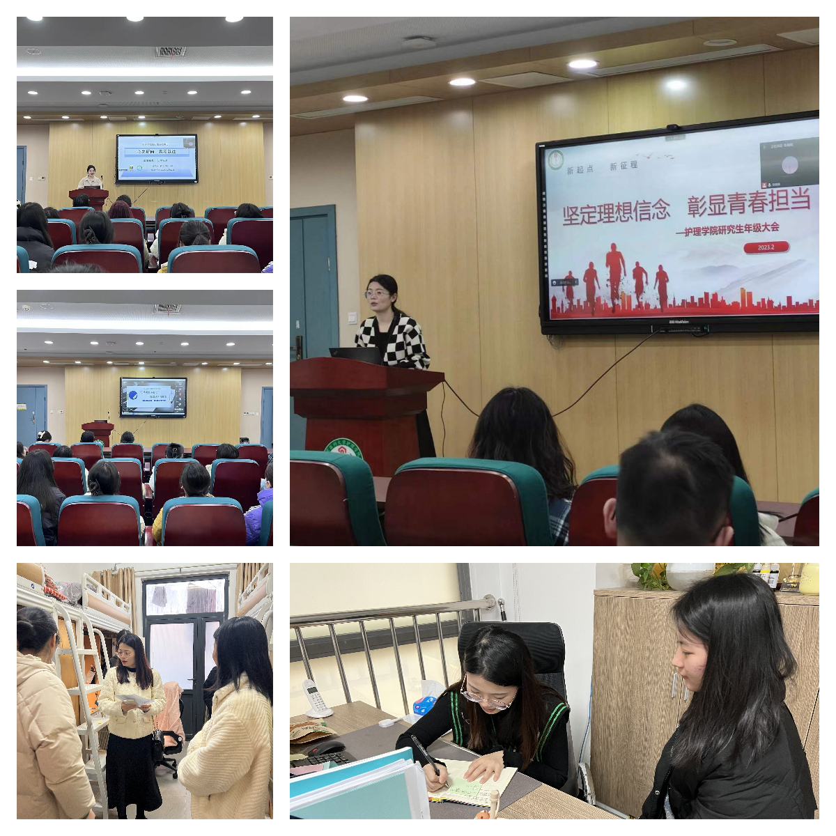 2月22日,MK体育(中国)研究生年级大会在学海楼C503举行,全体研究生参加了会议,会议由辅导员张晓路老师主持。会议伊始,张老师与同学共同观看了纪录片《白衣执甲》和《答卷》,并回顾了我院研究生们在疫情防控期间参与核酸采样等志愿服务的积极贡献,希望新的学期同学们做好个人健康管理,同时用己所学、尽己所能,展现护理学子的青春担当。随后,我院2021届毕业生刘玲珑和2020级研究生徐婷同学分别就留学深造和科研创新等方面进行了经验分享,鼓励同学们及时做好规划,稳扎稳打,提高自身竞争力。最后,张老师就新学期的注意事项等进行讲解,引导学生们以更加饱满的心态去努力奋斗、不负韶华。