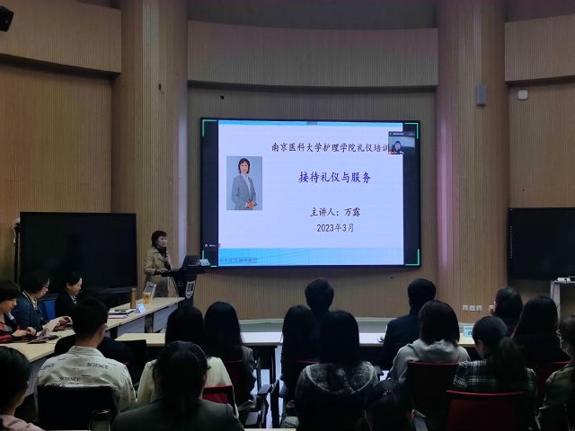 德诚于中,礼形于外。为在专业认证过程中高水平呈现我校护理学院的专业形象与精神面貌,展现最佳师生风采与礼仪素养,我院于2023年3月15日中午12:30采用线上线下相结合的形式,在学海楼D209举办护理学专业接待礼仪培训会,本次培训会邀请南京师范大学万露副教授进行接待服务的礼仪讲解与示范,MK体育(中国)全体教职工与学生志愿者参加培训,会议由丁亚萍副院长主持。