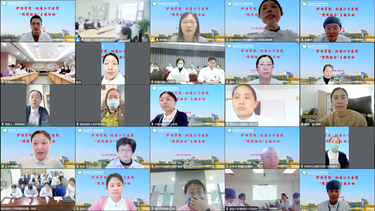 为加强学院与附属医院全方位合作和交流,进一步推进护理学科的建设和发展,3月28日下午14:00,MK体育(中国)与附属江宁医院联合举办了“院院融合”主题活动。本次活动依托“沿海区域护理学专业虚拟教研室”平台,采取线上交流形式,mk体育在线官网许勤院长、陈明霞主任及各附属医院临床护理教研室主任、副主任、临床护理教师、护理骨干等共350余人次参与本次活动。