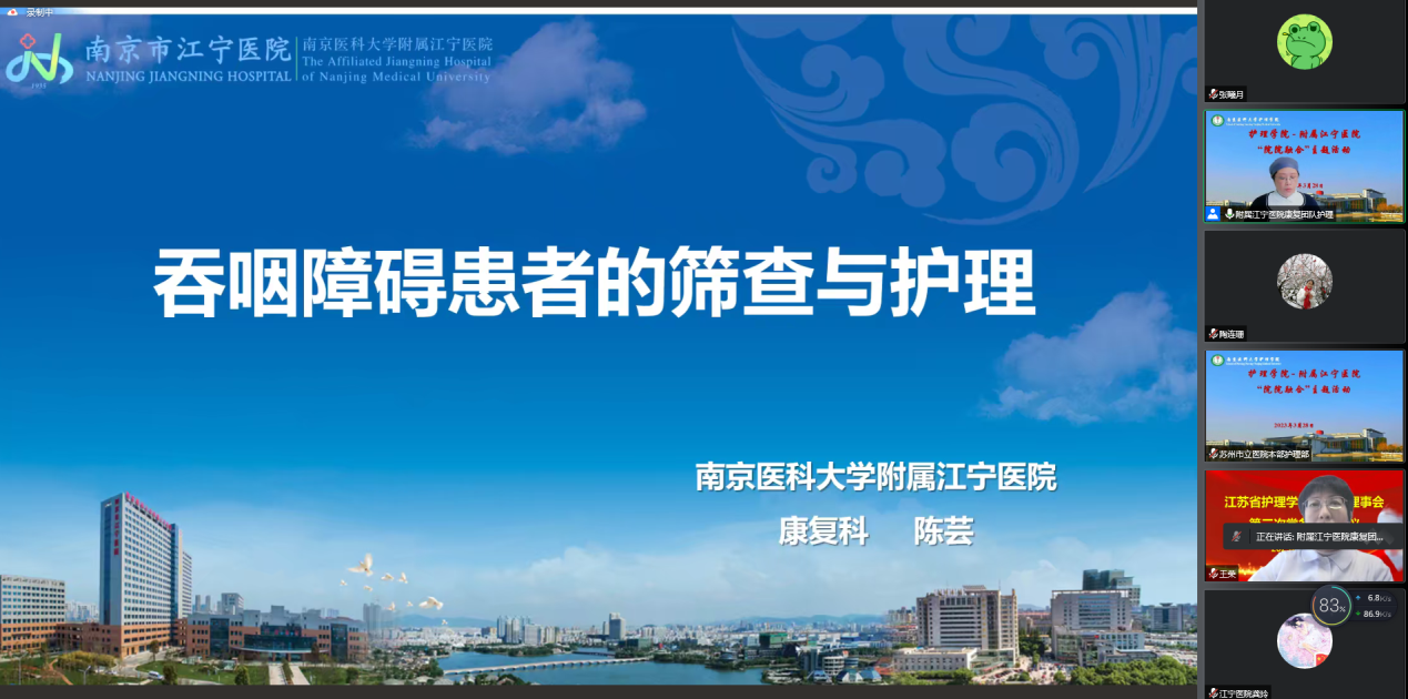 会议由附属江宁医院护理部龚玲副主任主持,本次活动交流主题是基于专科特色护理服务--吞咽障碍的全流程管理。