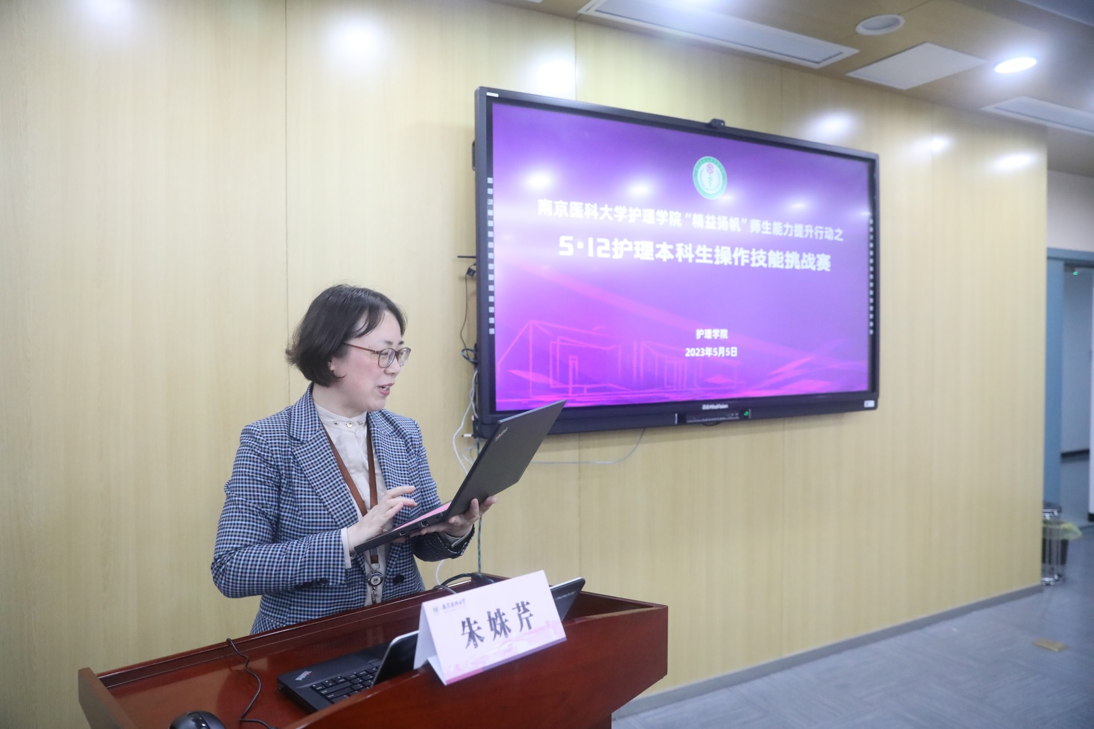 2023年5月5日18:30,mk体育在线官网举办了“精益扬帆”师生能力提升行动之5·12护理本科生操作技能挑战赛。南京医科大学教务处副处长、医学模拟教育中心副主任黄华,MK体育(中国)党总支书记陈龙,院长许勤,副书记、副院长苏益民,副院长丁亚萍,教师裁判,辅导员等老师以及参赛的29支2021级本科生参赛队伍出席了开幕式。