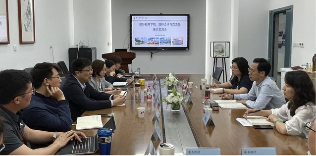 座谈会上,与会领导和老师就国际化人才培养、品牌专业建设、教学管理模式、来华留学生管理、访学项目申报等进行了深入的探讨和交流。