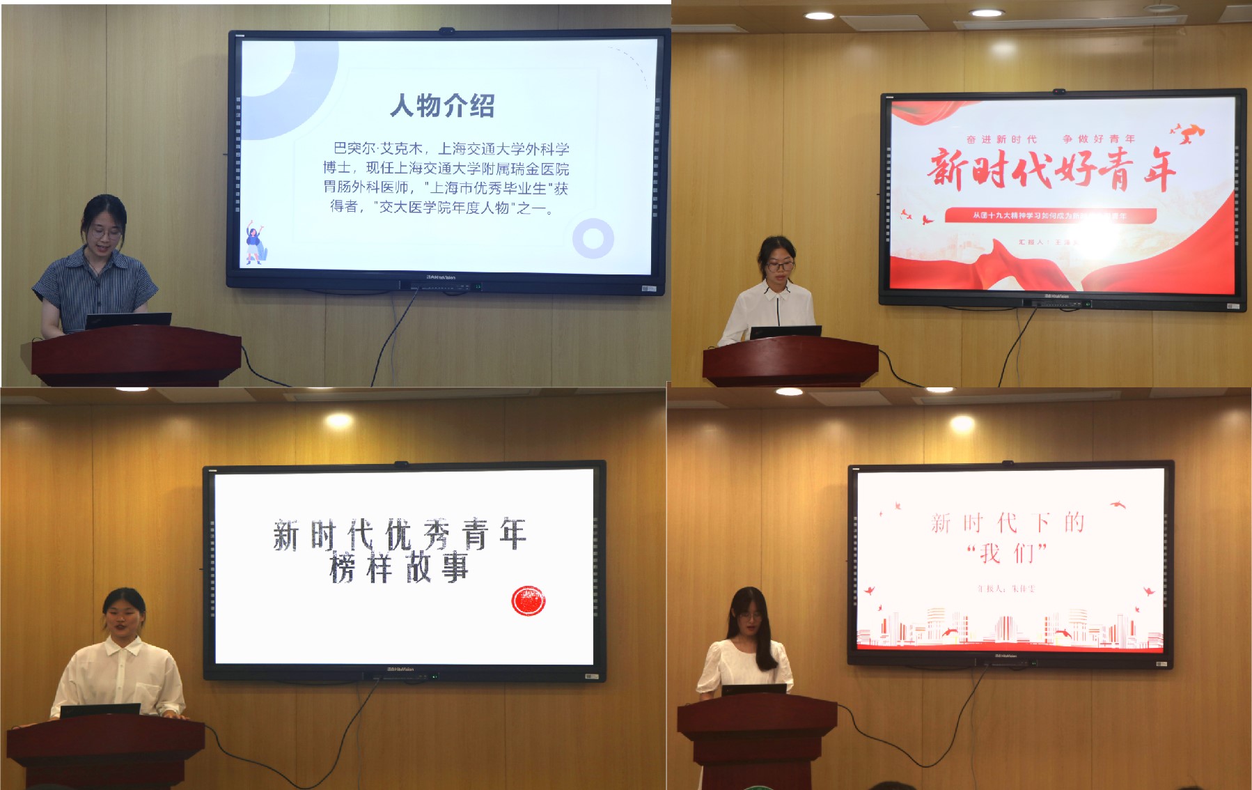 见面会的开始,班级团支书樊妍呈向大家介绍了22级护理1班的班级风貌,回顾着班级一年来的点滴经历。随后,刘雨卉同学和谢彤同学依次分享了他们心中的青年榜样。刘雨卉以“从新医大到上交大——“斜杠”博士的成长之路”为题,分享了新疆医院巴突尔·艾克木的成长经历,希望同学们能够有所坚持,也要有所热爱。 谢彤为同学们带来了95后人大代表徐萍和拉酷科技创始人龚华超的精彩事迹,他呼吁同学们要不甘于平凡,不断拼搏向上。会议第三项议程,学生代表朱佳雯和王泽爽分别结合中国共产主义青年团第十九次全国代表大会精神和自己的学习、生活经历为同学们深刻阐述了如何成为一名新时代的好青年。朱佳雯认为成为新时代好青年应该要有具有坚定的理想信念,能够坚持改革创新,勇于担当责任、并且要树立正确的人生观和价值观。王泽爽从团十九大报告中找到这个问题的四个答案,分别是旗帜引领,青春步履更铿锵;使命在肩,青春风貌更昂扬;奋进未来,青春底色更亮丽;开放包容,青春力量更磅礴。