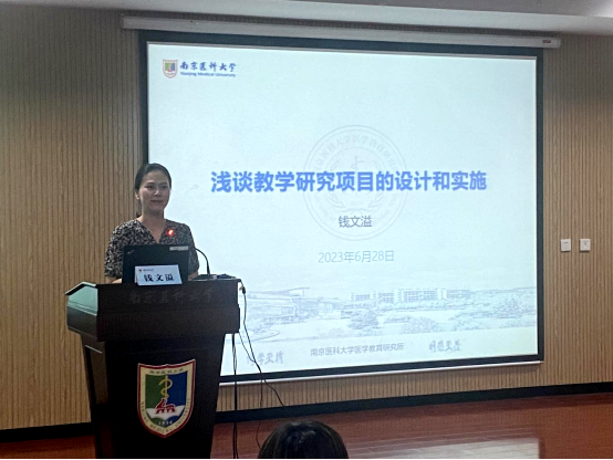 医学教育研究所钱文溢副所长分享了什么是教学研究、如何进行课题设计及课题实施与总结,认为研究从教学而来并服务于教学,总结了护理教育研究中的高频关键词和热点,号召大家积极申报校级、省级、国家级项目。