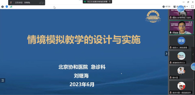 北京协和医院急诊科的刘继海主任讲授了《情境模拟教学的设计与实施》,他以一段危重症抢救的教学视频为引导,分析医疗差错及产生原因,讨论非操作性技能培训现状,引入针对教学需求分析、情景模拟课程设计及实施等的讨论。