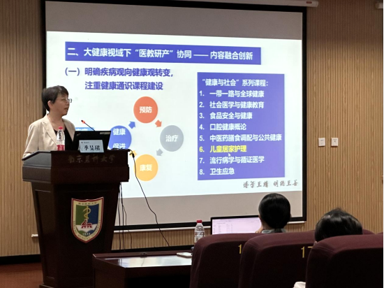 教务处季旻君副处长讲授了以胜任力导向的医学一流课程建设的思考和经验,结合教育教学的三大理念:学生中心,结果导向,持续改进,介绍了一流课程建设的核心要素:HOPE + I-CARE,提出课程建设应聚力融合创新,推动教育革新。
