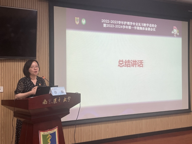 许勤院长总结发言。她表示,护理的未来起步于学校课堂,成长于医院床旁,各教学基地对标建设要求做到了教学理念的内化。她提出三点要求:首先,要加强师资队伍建设,对标双一流、高水平、示范性护理学专业要求建设相匹配的临床双师型师资队伍;其次,在实践过程中,实现教学方式模式的变革;最后,关注教研成效和学生成效,胜任岗位需求,达到护理卓越人才培养目标。她表示我们要顺势而为,乘势而上,形成持续机制,攀高行远。