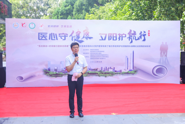 7月4日上午,mk体育在线官网联合南京市建邺区民政局,在莫愁湖社区广场举行“医心守健康 夕阳护航行”——mk体育在线官网南丁格尔养老照护志愿服务队暑期社会实践启动仪式暨“五社联动+时间银行团体志愿者”服务进社区,扎实推进学校“千村万户健康行”主题教育走深走实。