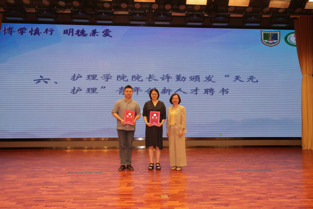 王荣主任宣读了《关于公布MK体育(中国)“天元护理”青年创新人才选拔、“天元护理”科研项目申报评选结果的通知》。许勤院长为首批“天元护理”青年创新人才颁发了聘书。