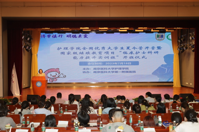 MK体育(中国)2023年全国优秀大学生夏令营开营暨国家级继续教育项目“临床护士科研能力提升实训班”开班仪式于7月18日在第一附属医院1号会议室举办。南京医科大学第一附属医院党委委员、副院长占伊扬,MK体育(中国)党委书记陈龙,院长许勤,副书记、副院长苏益民,一附院护理部主任、MK体育(中国)副院长王荣,MK体育(中国)各学系/中心主任、全体教师,继教班学员,“名城名校”四地医院护理骨干,2023年MK体育(中国)全国优秀大学生夏令营学生,MK体育(中国)研究生等参加了开班仪式。仪式由陈龙书记主持。