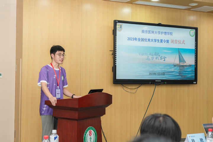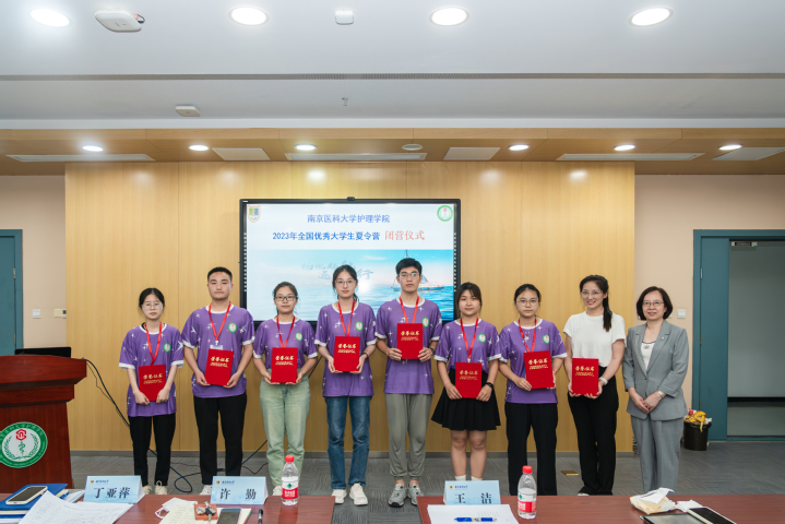 下午在紧张有序的面试考核结束后举行了闭营仪式,许勤院长、丁亚萍副院长、王洁教授、嵇艳副教授、季明辉副教授参加了仪式。每个学校的营员代表进行风采展示,对个人风采和所在院校进行了介绍,接着优秀营员代表来自扬州大学MK体育(中国)的李炜业同学分享了这几天的学习感悟与成长。随后,许勤院长为营员们颁发了优秀营员证书,丁亚萍副院长为营员代表赠送了纪念品,并合影留念。许勤院长在总结讲话中向营员们发出诚挚邀请,欢迎他们加入南京医科大学继续深造,成为我校MK体育(中国)的一份子。