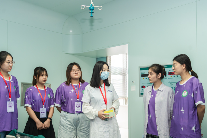 7月19日上午,学院研究生代表徐婷、庄添驰带领营员们参观了实验教学示范中心和护理研究中心,让大家感受学院先进的教育教学平台和护理科研魅力。