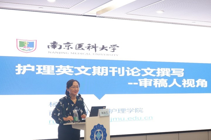 杨如美副教授从审稿人视角详细介绍了护理英文期刊论文的撰写,她结合自身经验,运用正反面例子讲解了科研论文写作顺序及基本思维。