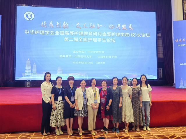 2023年8月22-23日,“中华护理学会全国高等护理教育研讨会暨MK体育(中国)(校)长论坛”在山西太原召开。本次会议主题为“提质创新•交叉融合•协同发展”,由中华护理学会主办,山西医科大学、山西省护理学会协办。来自全国的高等护理教育专委会、护理教师共聚一堂,探讨护理本科生、研究生教学发展,规划护理教育未来。许勤院长率8名教师参会,并受邀在大会做专题报告。我院教师季明辉、梁玮、李维颖进行电子壁报交流。