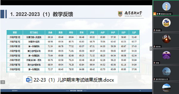 首先,唐慧婷老师分享了《儿科护理学》今年荣获第二批国家级一流本科课程的好消息,该成果的获得离不开所有《儿科护理学》教学团队成员的共同努力和辛勤付出。接着,唐老师就上学年期末成绩的总体情况、失分率较高的题目进行了深入细致的分析,从中指出学生们存在的问题,以指导新学期的教学过程能有所改进,重点突出,注重理论向临床护理实践的转化。