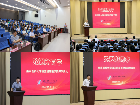 镇江临床医学院举行了开学典礼,蒋鹏程院长、黄举书记、教科办和临床护理教研室老师看望了同学们。张明老师致欢迎辞对新生力量的成长提出希冀,教师代表姚翔主任向同学们重点强调“适应”与“快乐”两个关键词,希望同学们能够平衡好考研与临床见习。蒋鹏程院长发表讲话,回忆了与南医大、南医同学的不解之缘,并对“后浪”的综合素质作出称赞和期许,期望同学们能够“扣好人生的第一粒纽扣”从理论到见习,做好学习生涯的规划。