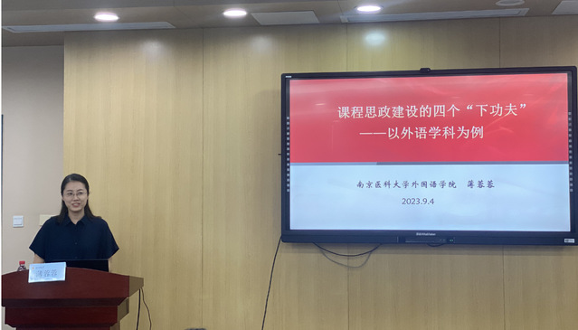 外国语学院薄蓉蓉副教授以《课程思政建设的四个“下功夫”——以外语学科为例》作专题报告。她表示,一线教师需要提高站位,挖掘深层次育人元素,与学生在有高度、有力度、有温度、有广度的课堂上双向奔赴;同时,要打破学科壁垒,将党建工作、课程建设和学生思想政治教育工作等融于一体。课程思政建设永远在路上,如何能让课程思政“如盐在水”,需在理论武装、担当作为、能力本领和创新载体四个方面下功夫。