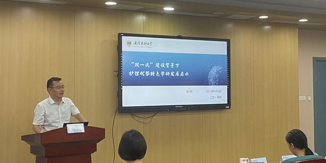 学校学科建设处鲁明处长应邀以《“双一流”建设背景下护理优势特色学科发展启示》作专题报告。他以“国家需要什么?”、“我们能做什么?”为切入点,从人才培养、师资队伍、科学研究、社会服务和国际交流合作等方面为护理学科发展指明方向,要求学院以专业认证为契机,继续对标国内国际一流院校,找差距补短板,准确把握新发展阶段战略定位,顺势而为,乘势而上,攀高行远。
