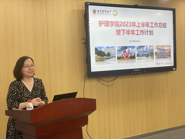 许勤院长传达了学校2023年下半年工作会议精神,以“凝心聚力促发展、千钧重任再扬帆”为主题,从充分发挥党组织政治核心作用、强化学科建设与内涵发展、推进科学研究工作、提升学术研究水平和强化师资队伍建设等方面回顾总结上半年工作目标任务完成情况,分析工作中存在的问题短板和当前面临的新形势、新任务,明确下半年工作目标,从强化党建引领、聚焦思政教育、召开首届护理学科发展高峰论坛、持续推进“院院融合”、“天元护理”人才培养、加强对外交流、加强内部管理等方面部署了学院2023年下半年的主要工作。她希望新学期新起点,大家要凝心聚力,高站位、多渠道、全方位谋发展,以学校临床提升名城专项为契机,踔厉奋发,为推进学院高质量发展乘风破浪,再扬帆。