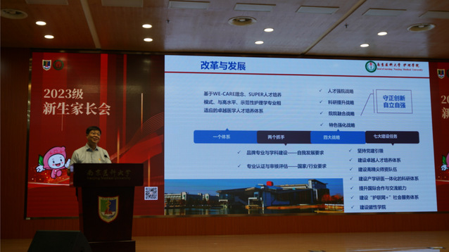学院党委副书记、副院长苏益民介绍了学院学生工作概况、毕业与就业、大学各阶段任务及常见问题,向家长们提出“有分寸地关注”等六个建议。