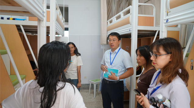 副书记、副院长苏益民与学工办主任顾莹前往新生宿舍看望慰问新生。