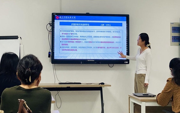 第二位教师樊雪梅就分娩期妇女的护理进行教学设计说课。樊老师的教学设计详细且具有高阶性,针对课堂上的具体实施,汪璐老师和周春秀老师提出了针对护理学专升本函授学生的教学方法可行性指导意见。