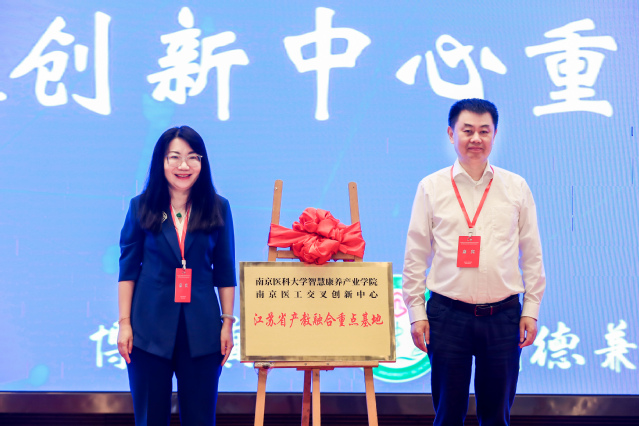 江苏省教育厅袁靖宇副厅长、教育部高等学校护理学类专业教育指导委员会秘书长孙宏玉教授共同为“江苏省本科高校产教融合重点基地建设点:南京医科大学智慧康养产业学院-南京医工交叉创新中心实践基地”揭牌。该基地成功入选2023年江苏省产教融合重点基地建设点,是学校继获批省级重点产业学院、省级产教融合型品牌专业建设点(护理学专业)后,在产教融合方面取得的又一重要成果。