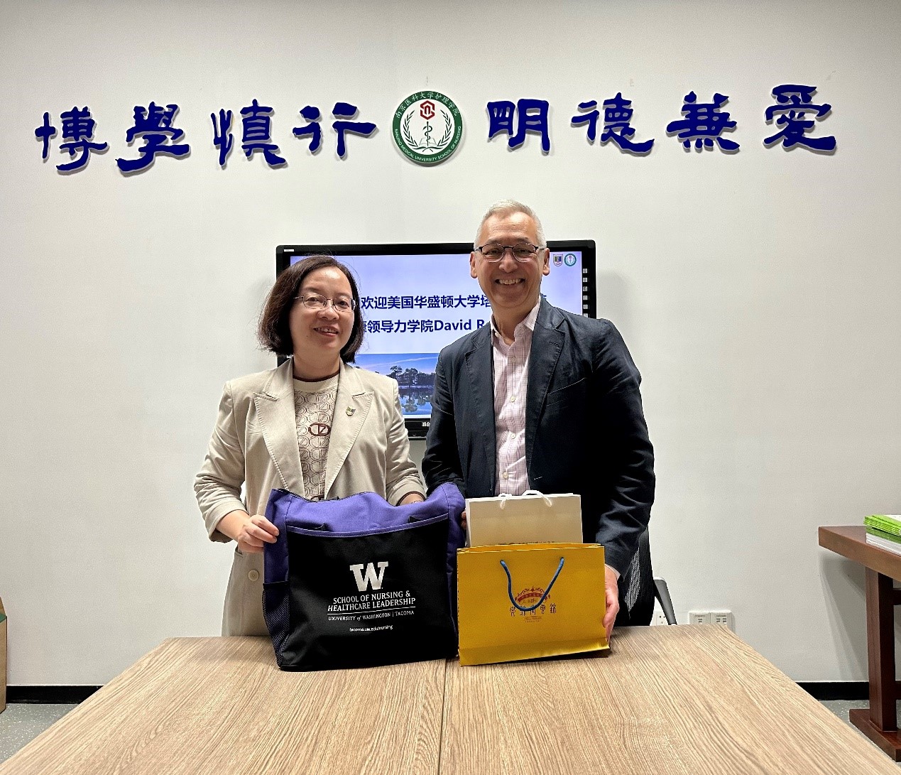 10月16日,美国华盛顿大学塔科马分校护理与健康领导力学院David Reyes院长、宇文薇超博士来学院交流。院长许勤教授、院长助理李现文副教授、殷月姮博士参加了交流。