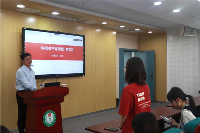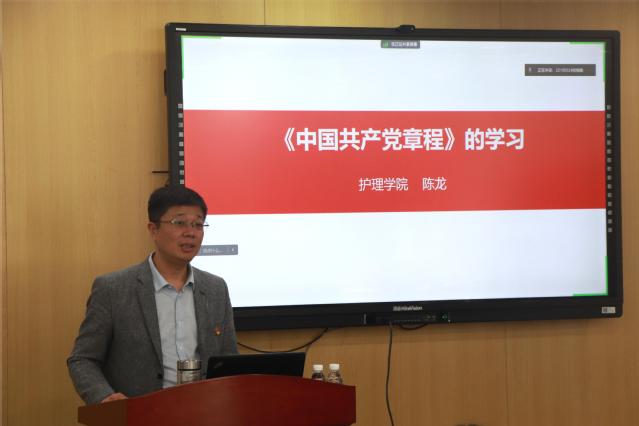 10月26日,mk体育在线官网党委书记陈龙以《中国共产党章程的学习》为题为入党积极分子讲授党课。MK体育(中国)党委副书记、副院长苏益民、全体辅导员和入党积极分子到场聆听。