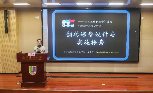 南京中医药大学MK体育(中国)柏亚妹教授以«创新课题教学设计,培养一流护理人才»为题,南京医科大学MK体育(中国)唐慧婷老师以«如何依托信息技术实现翻转课堂»为题,表述了采用线上线下混合式教学,翻转课堂实践有助于更有效地培养学生的创造性思维和应用分析能力,鼓励学生主动参与知识建构与深度学习过程。
