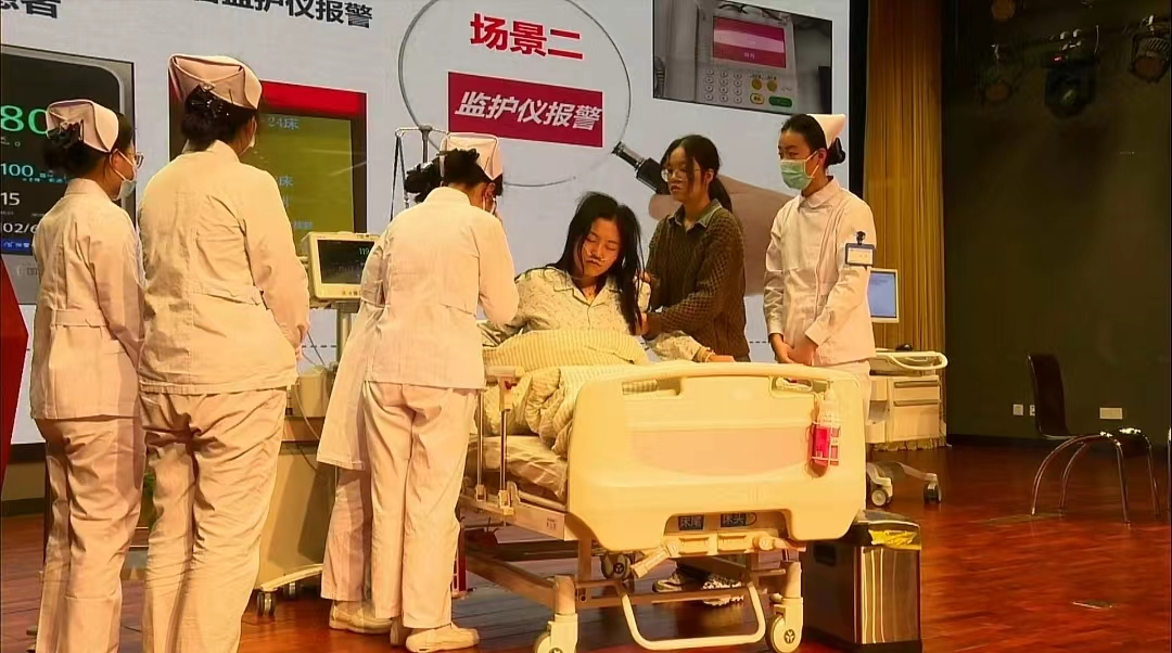 紧接着,一场由一附院胸外科护理组主导的教学查房以情景剧的形式在舞台上倾情演绎,立体生动的展示了教学查房内容。