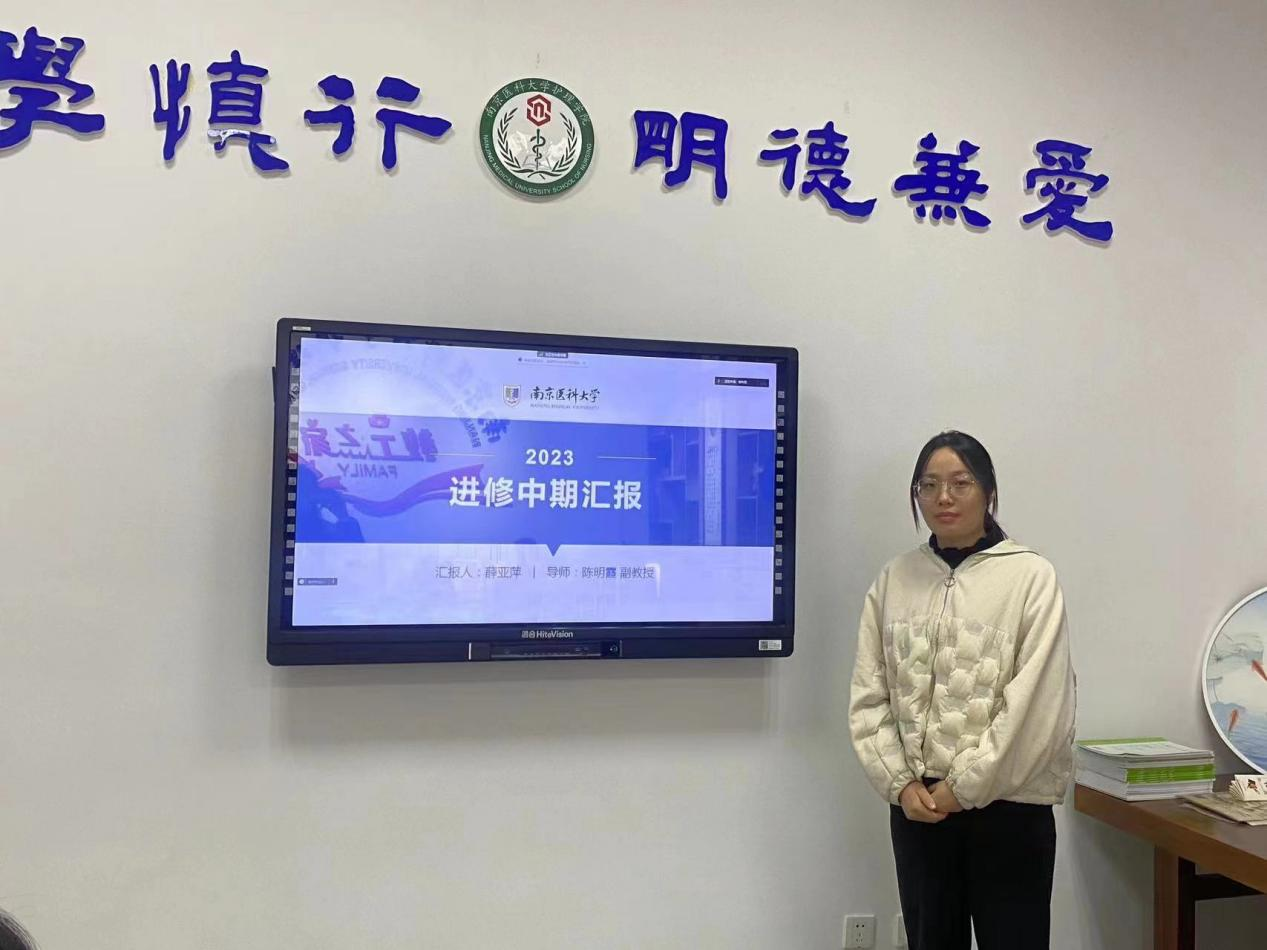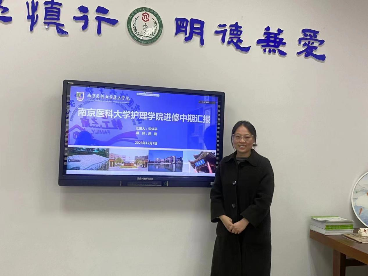进修教师薛亚萍(附属常州市第二人民医院)发言,她从进修学习内容与收获、阶段性成果、课题研究进展和后期规划等方面汇报了进修以来开展的各项工作,为后期工作和学习做了明确的规划。她表示感谢学院的各位老师的指导和帮助,进修期间收获不只是专业知识,更重要的是视野的开拓、工作思路的拓宽和管理理念的更新。接下来的时间,将梳理进修期间所学内容,对照当初的设定目标,查漏补缺。