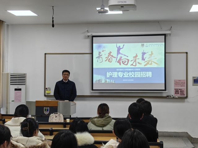 苏益民副书记主持招聘会,他对两家医院来校开展校园直通车招聘会表示诚挚地感谢。他叮嘱同学们,学院和医院合作开展的校园直通车招聘会是高效率求职与高质量就业的绿色通道,要充分把握住来之不易的就业机会。