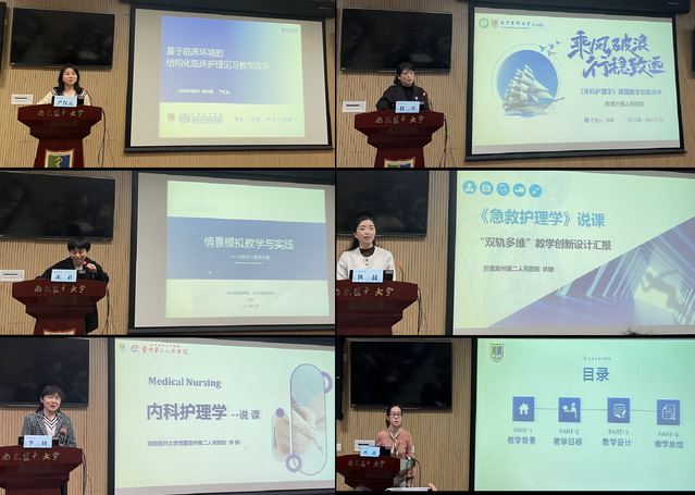 在刚刚结束的南京医科大学第四届教师教学创新大赛中,护理见习教学基地积极参赛并取得了优异的成绩。会上,附属常州第二人民医院《急救护理学》团队狄捷老师展示了副高组一等奖和最佳教案奖项目,《内科护理学》团队李妍老师展示了正高组二等奖和最佳教案奖项目。附属无锡人民医院《护理营养学》团队曹蓉老师展示了副高组二等奖获奖项目,彰显出护理双师型师资队伍建设的成效。