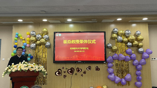 崔焱教授为护理学科建设、人才培养、办学条件提升做出了重要贡献,为学院的发展打下了扎实的基础。为感谢崔焱教授对护理教育事业的无私奉献,许勤院长代表学院向崔焱教授赠送了纪念礼物,基础与社区护理学系教师代表、学生代表向她献花致敬。