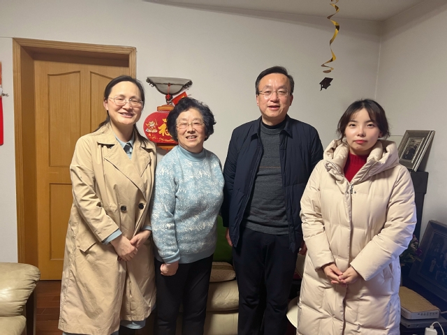 1月31日-2月1日,MK体育(中国)党委马俊书记,许勤院长,高兰天副书记、副院长,嵇艳副院长,相关学系、办公室负责老师走访学院退休陈健敏、李秀珍、张秀芳三位老教师,提前向老同志们致以诚挚的春节祝福。