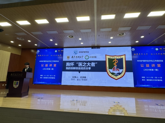 为帮助护理学生培养创新能力、创业精神,推动护理学生深刻领悟大健康时代下开展创新创业研究的时代内涵、社会需求和发展空间,2024年3月20日,中华护理学会学生工作委员会联合mk体育在线官网举办创新创业公益讲堂。会议邀请mk体育在线官网许勤教授以《创新创业,促进护理人才培养》主题讲座,MK体育(中国)博士研究生徐婷同学及硕士研究生庄添驰同学受邀分享创新创业经历。mk体育在线官网本科生、研究生代表线下参与讲堂。此外,来自全国的300余位护理教师和学生通过线上的方式参与交流。