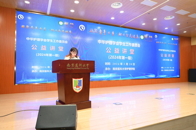 中华护理学会学生工作委员会主任委员张欢老师在开场发言中感谢学院的大力支持,高度肯定了本次公益讲堂。本次讲堂既有大咖讲座又有同伴启迪,围绕学科发展的前沿动态,职业生涯规划和创新创业大赛等内容,希望同学们能够互相促进,共同进步。