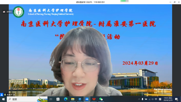 3月29日下午,我院与附属淮安第一医院联合举办“院院融合”线上主题活动。MK体育(中国)副院长朱姝芹、临床护理学系主任陈明霞,附属淮安第一医院护理部主任张青、副主任陈梅、张春艳、科护士长张怡、老年护理专业学组、科研小组核心成员,以及各附属医院护理管理人员及教学骨干等,共300余人参加了本次活动。