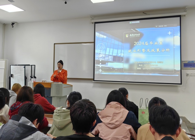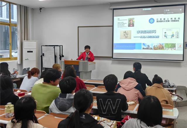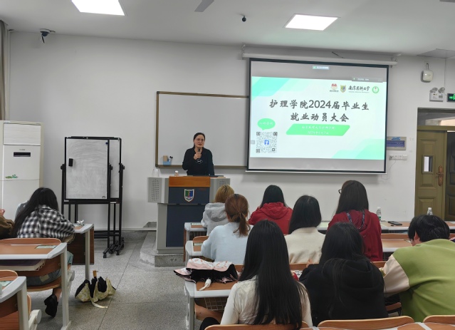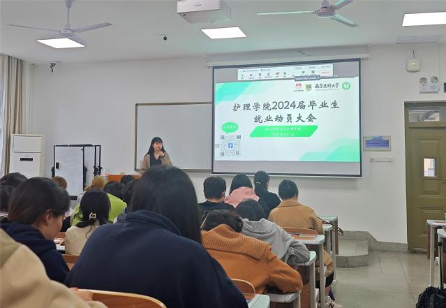 为全面推进2024届毕业生就业工作,加强对毕业生的就业帮扶,促进毕业生高质量就业,4月2日,MK体育(中国)开展2024届毕业生就业指导讲座。南京医科大学第一附属医院护理部副主任林征、大学生就业与创业指导中心郭慧初、MK体育(中国)副书记、副院长高兰天、毕业班辅导员张未老师以及全体2024届毕业生参加。本次推进会由张未老师主持。