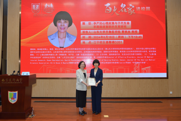 南京医科大学科研院规划处周其冈处长主持本次学术讲座,许勤院长在致辞中对曹枫林教授的到来表示欢迎,介绍了专家的学术背景,并为曹枫林教授颁发讲座证书。