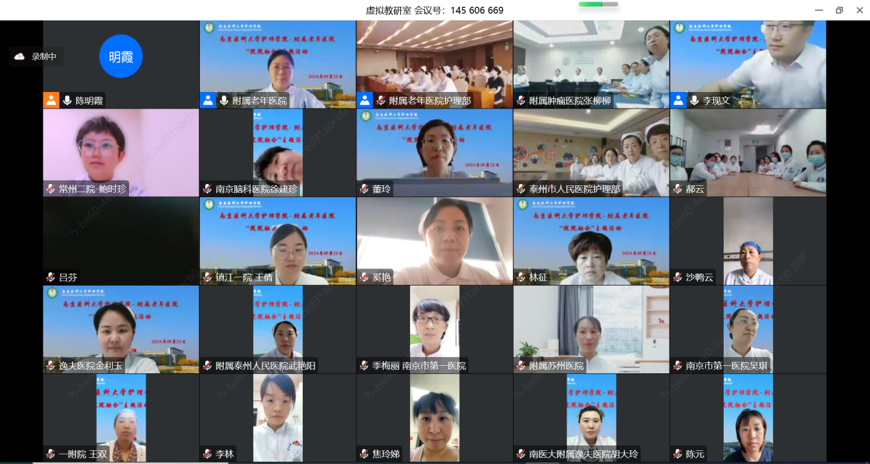 5月21日下午,MK体育(中国)与附属老年医院联合举办了“院院融合”线上主题活动。MK体育(中国)院长助理李现文、临床护理学系主任陈明霞,附属老年医院护理部主任蔡崔春、老年医学科主任欧阳晓俊、全体护士长及护理骨干,各附属医院护理管理人员及教学骨干共100余人参加本次活动。