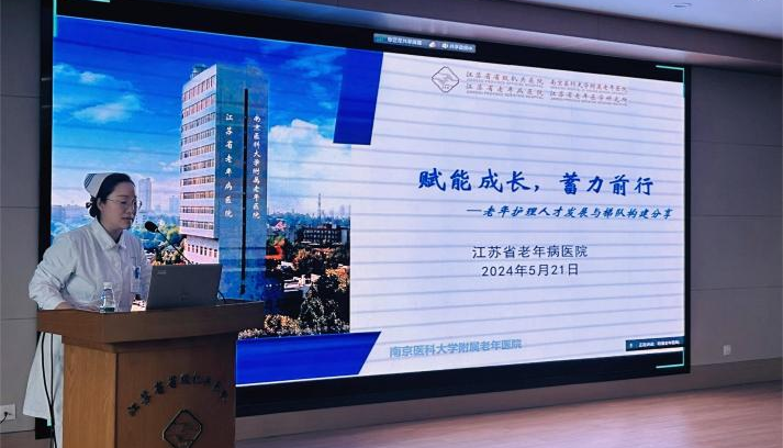 随后,附属老年医院护理部蔡崔春主任就医院老年护理人才发展与梯队构建方面的内容进行了分享。她详细介绍了医院在加强护理队伍建设、提升护理服务质量及深耕老年护理专科技术方面的举措和实践成果。